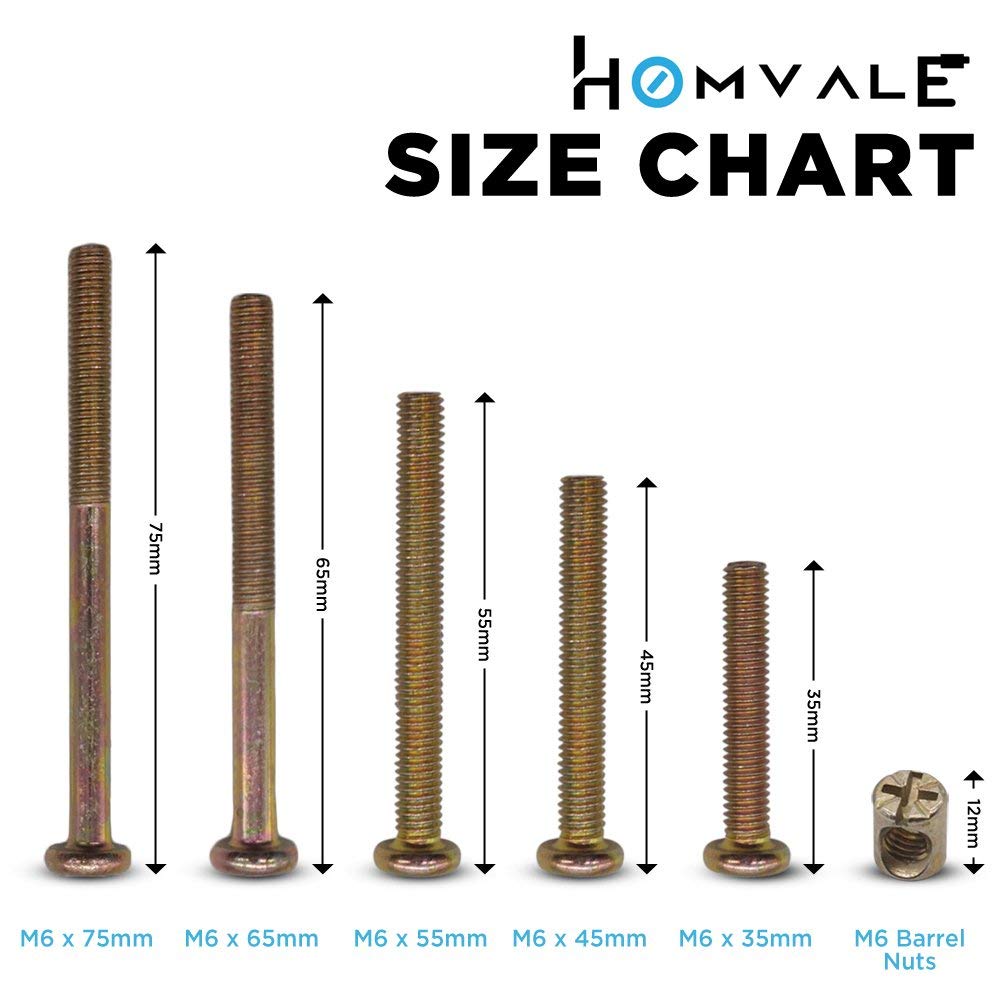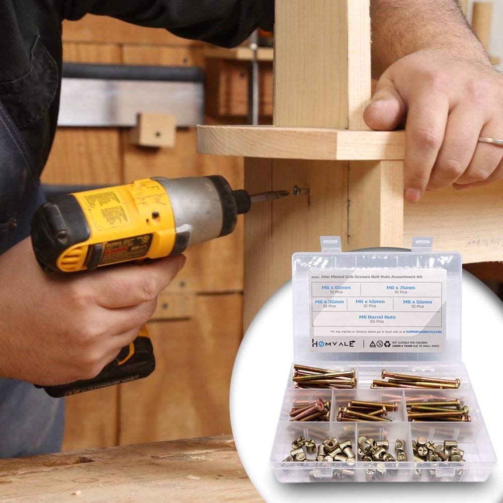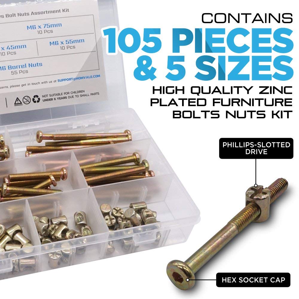 Zinc Plated Crib Furniture Barrel Screws Bolt Nuts with Hex Drive Socket Cap (105 pcs in M6 sizes)