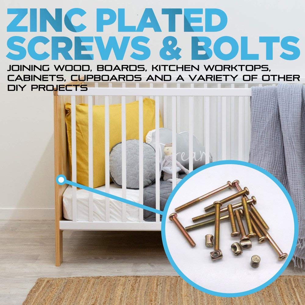 - One (1) set of zinc plated crib furniture barrel screws bolt nuts with hex drive socket cap